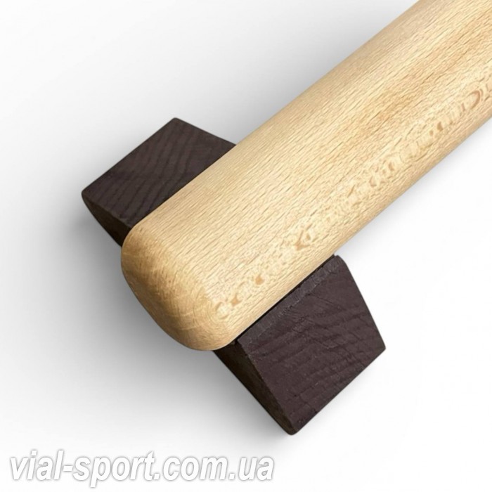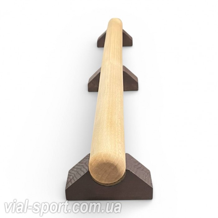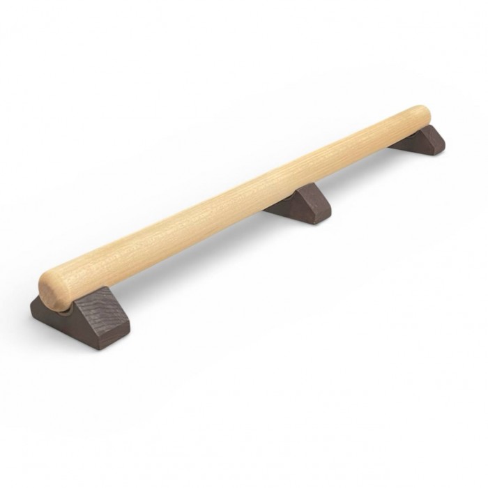 Поперечина виготовлена з натурального дерева (Бук) довжиною 150 см та діаметром 40 мм, фіксується на місці двома опорами. Ніжки-опори не дають поперечині рухатися під час того, як ви встаєте на ногу і утримуєте баланс.