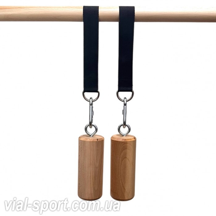 Тренажер для підтягувань виготовлений із міцного бука. Дерев’яні елементи забезпечують надійний і комфортний хват без ковзання. Конструкція легко кріпиться до турніка або перекладини за допомогою строп і карабінів та підходить для регулярних тренувань вдома і в залі.